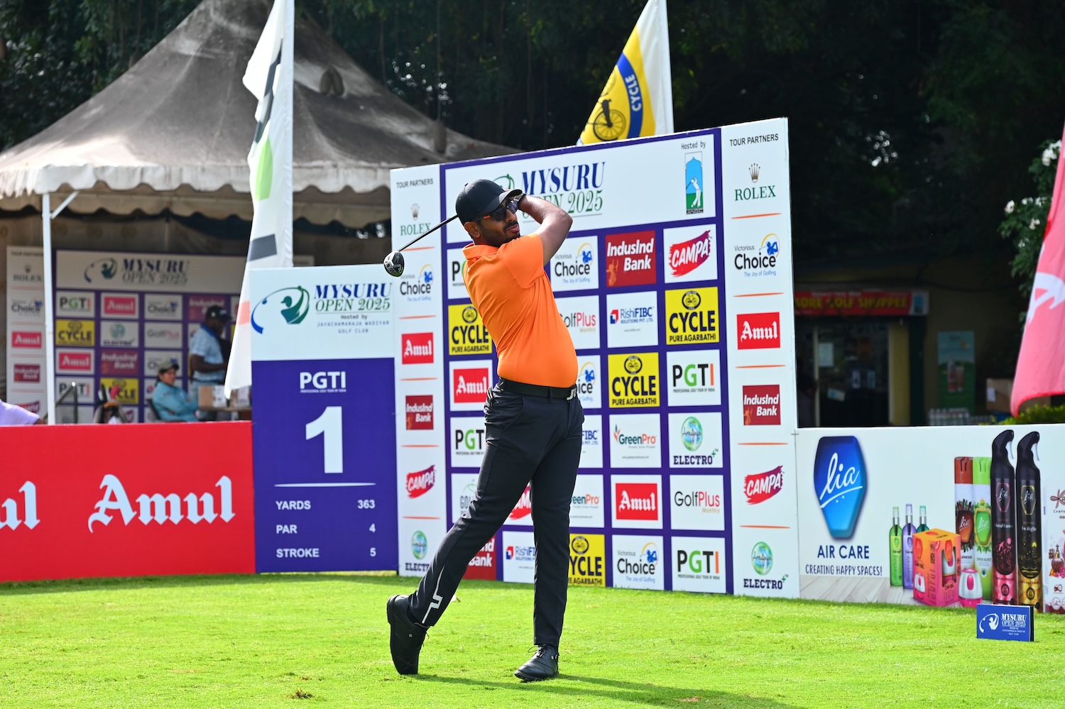 Chandigarh’s Yuvraj Sandhu fired a 9 under 61 for the lead on day one of the Rs 1 crore Mysuru Open on Tuesday.